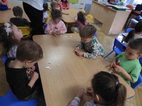 Straszne dinozaury i prehistoryczne skamieliny W tym tygodniu podczas zajęć Dociekliwego Przedszkolaka poznawaliśmy pradawny świat dinozaurów oraz prehistorycznych lasów. Zainspirowało nas to do zabawy w paleontologów, którzy odnaleźli piękne skamieliny i odciski.