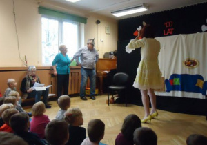 Przedszkolaki miały przyjemność gościć w przedszkolu Teatr seniora, czyli aktorów Teatru Żydowskiego.