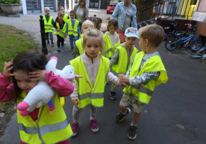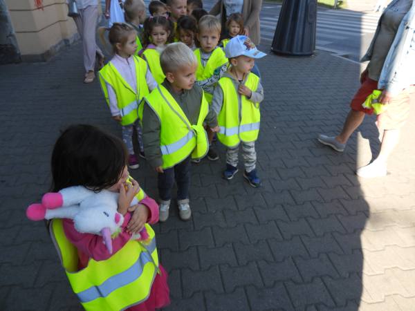 W dniu 20 września dzieci z grup I i II wybrały się na pobliskie skrzyżowania. Celem naszej wyprawy była obserwacja ruchu ulicznego, znaków drogowych, rowerzystów, ale przede wszystkim praktyczne ćwiczenia w prawidłowym przechodzeniu przez jezdnię z sygnalizacją świetlną oraz w oznakowanych miejscach bez sygnalizacji. Dzieci poradziły sobie świetnie stosując 5 zasad: zatrzymaj się przed przejściem, spójrz w lewo, spójrz w prawo, spójrz w lewo, jeśli nic nie jedzie, przejdź spokojnie na drugą stronę.